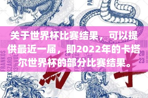 关于世界杯比赛结果,可以提供最近一届,即2022年的卡塔尔世界杯的部分比赛结果。