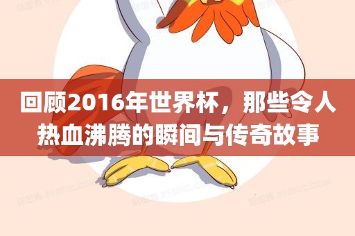 回顾2016年世界杯,那些令人热血沸腾的瞬间与传奇故事仍然历历在目,从开幕式的文艺表演到各国代表队的入场仪式,从传奇对决到黑马逆袭,从英雄崛起到其他精彩瞬间与故事,每一个细节都让人热血沸腾,这些瞬间和故事不仅让我们回味无穷,还让我们对足球这项运动充满了热爱和激情,我们也期待着下一届世界杯的到来,期待着更多的精彩瞬间和传奇故事的诞生,让我们共同期待足球的未来!