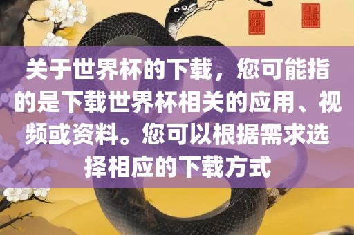 关于世界杯的下载,您可能指的是下载世界杯相关的应用、视频或资料。您可以根据需求选择相应的下载方式