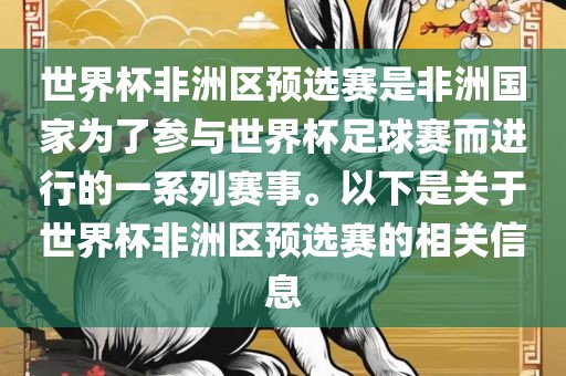 世界杯非洲区预选赛是非洲国家为了参与世界杯足球赛而进行的一系列赛事。以下是关于世界杯非洲区预选赛的相关信息